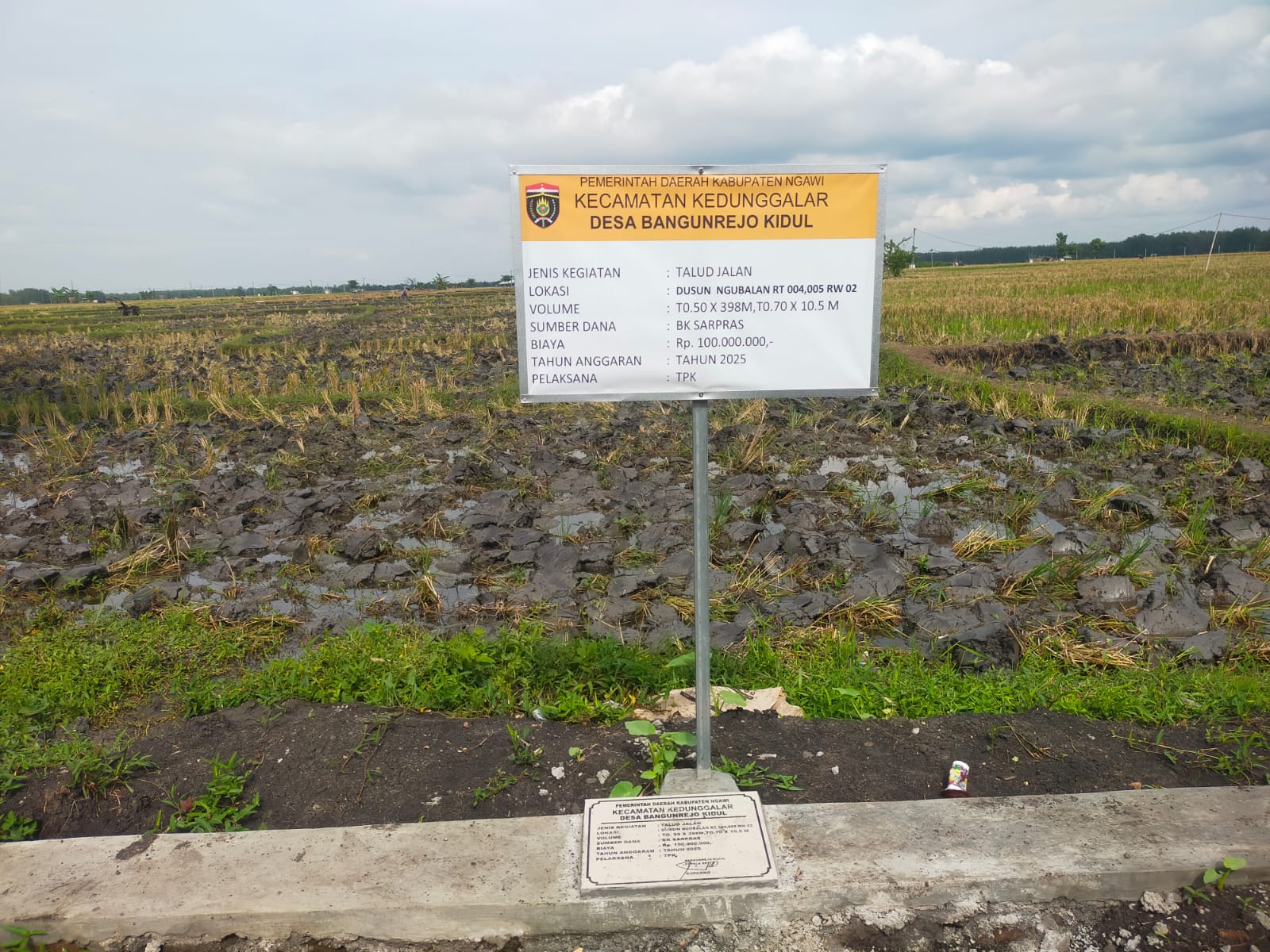 NGAWI, FrekwensiPos.Com – Menjelang penutupan tahun anggaran 2025, Pemerintah Desa (Pemdes) Bangunrejo Kidul, Kecamatan Kedunggalar, Kabupaten Ngawi, menunjukkan komitmen nyata dalam penguatan infrastruktur desa. Fokus utama saat ini diarahkan pada percepatan realisasi pembangunan Talud Jalan (Tanggul Penahan Tanah) guna memperkokoh struktur mobilitas warga.