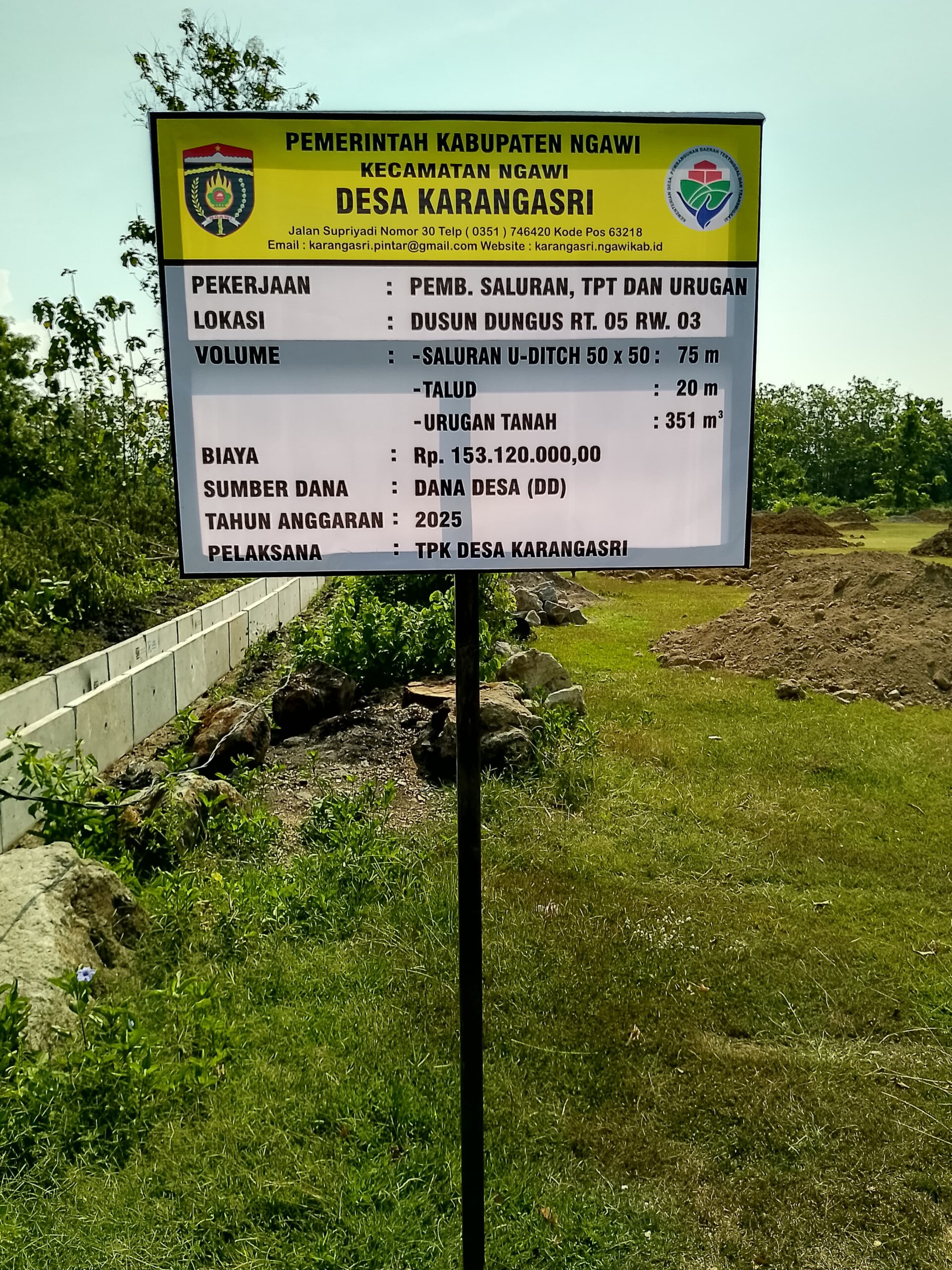 NGAWI, FrekwensiPos.Com – Pemerintah Desa Karangsari, Kecamatan Ngawi, Kabupaten Ngawi, secara progresif mulai merealisasikan alokasi Dana Desa (DD) Tahun Anggaran 2025. Fokus utama pembangunan diarahkan pada penguatan infrastruktur dasar di Dusun Dungus (RT 05/RW 03), sebuah langkah strategis untuk memperkuat land stability dan aksesibilitas warga setempat.