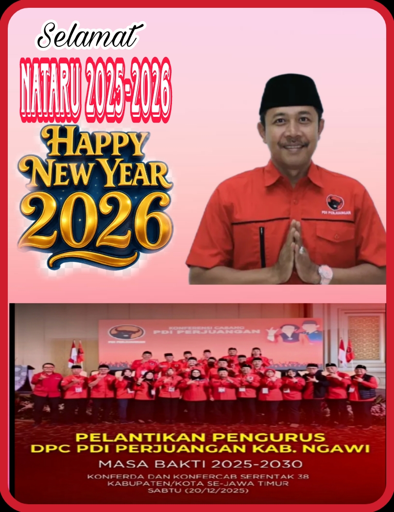 Ngawi.FrekwensiPos.Com — Melalui mekanisme internal yang berjalan dinamis dan demokratis, Dwi Rianto Jatmiko secara resmi kembali ditetapkan sebagai Ketua Dewan Pimpinan Cabang (DPC) PDI Perjuangan Kabupaten Ngawi untuk masa bakti 2025–2030. Penetapan ini dilakukan dalam forum Konferensi Cabang (Konfercab) yang diselenggarakan di Surabaya pada Sabtu malam (20/12/2025).