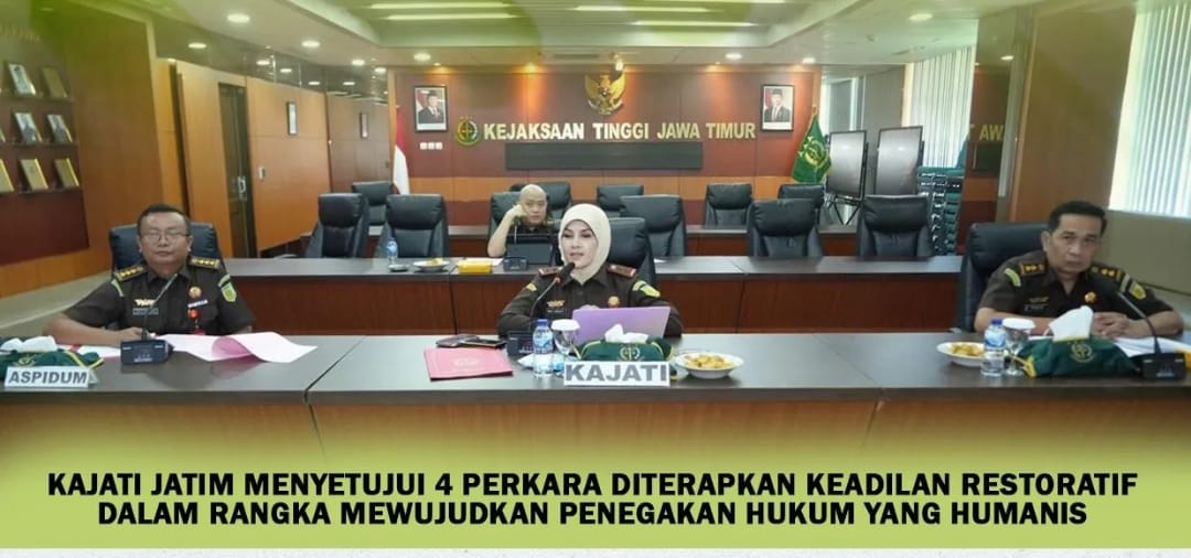 Dalam rangka melaksanakan penegakan hukum yang berorientasi pada konsep atau pendekatan Keadilan Restoratif, pada hari Rabu, tanggal 23 Oktober 2024, Kajati Jatim Dr. Mia Amiati, S.H., M.H., CMA., CSSL., memimpin Ekspose Mandiri 4 (empat) perkara yang diajukan untuk dihentikan Penuntutannya berdasarkan Keadilan Restoratif.