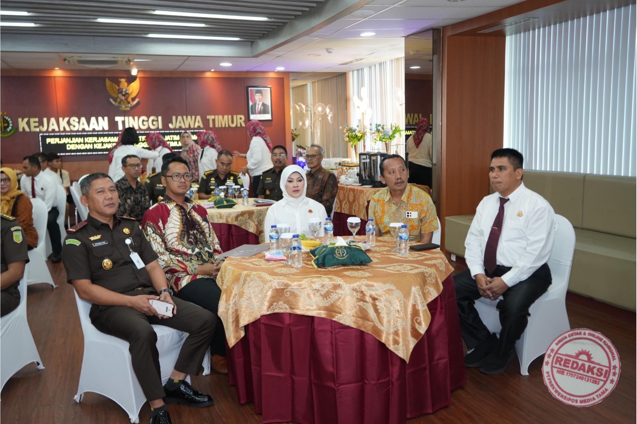 Pada saat itu, Kajati Jatim Mia Amiati didampingi oleh Wakajati, para Asisten dan Kabag TU serta para Koordinator dan Para Jaksa Pengacara Negara (JPN),