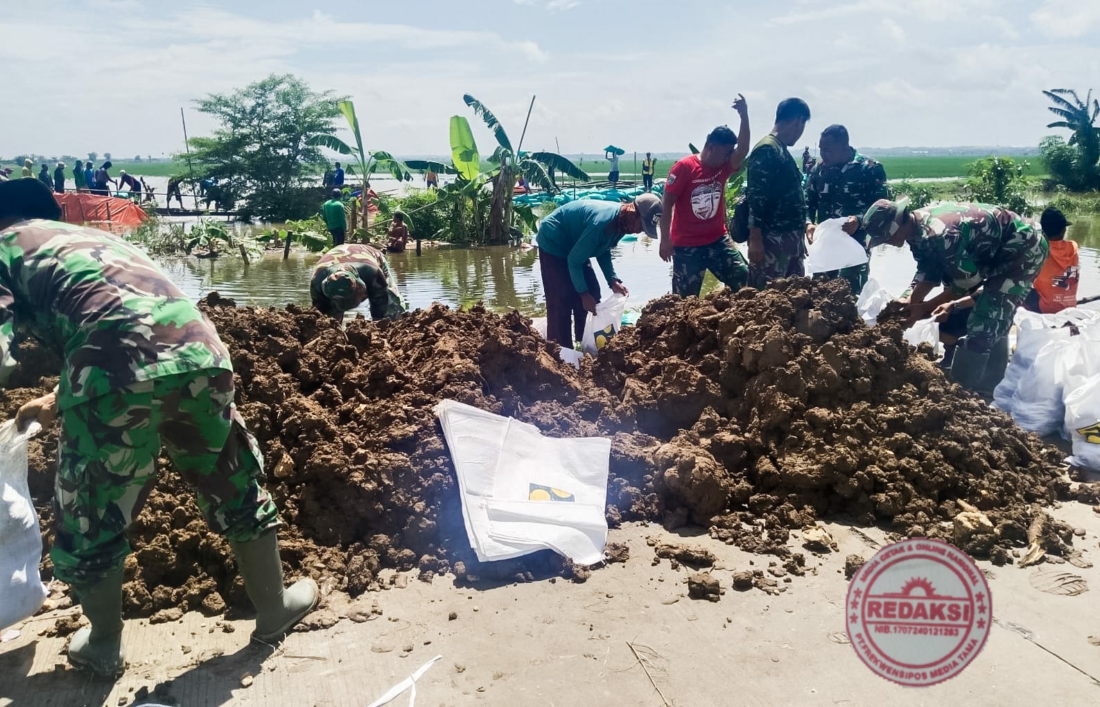 Dilokasi kegiatan karya bakti perbaikan tanggul jebol, Danramil 0813-10/Kanor, Kapten Cba Puji Hariyono, mengatakan bahwa pihaknya menurunkan sejumlah personel Babinsa untuk bersama-sama petugas dari instansi terkait lainya bergotong royong berusaha memperbaiki atau menutup tanggul yang jebol tersebut.