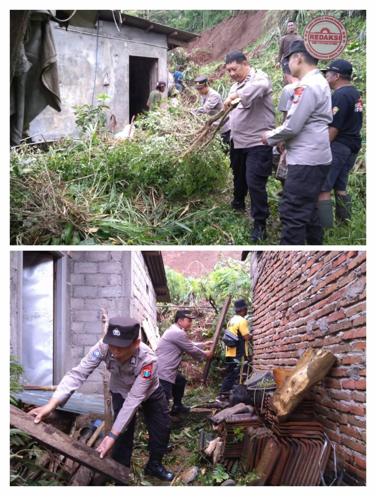 KEDIRI, Frekwensipos.com.-Rabu 22 Januari 2025,Polsek Kandangan Polres Kediri bersama Badan Penanggulangan Bencana Daerah (BPBD) Kabupaten Kediri dan masyarakat Desa Mlancu melaksanakan kerja bakti membersihkan lokasi bencana tanah longsor di Dusun Kwaringan, Desa Mlancu, Kecamatan Kandangan.