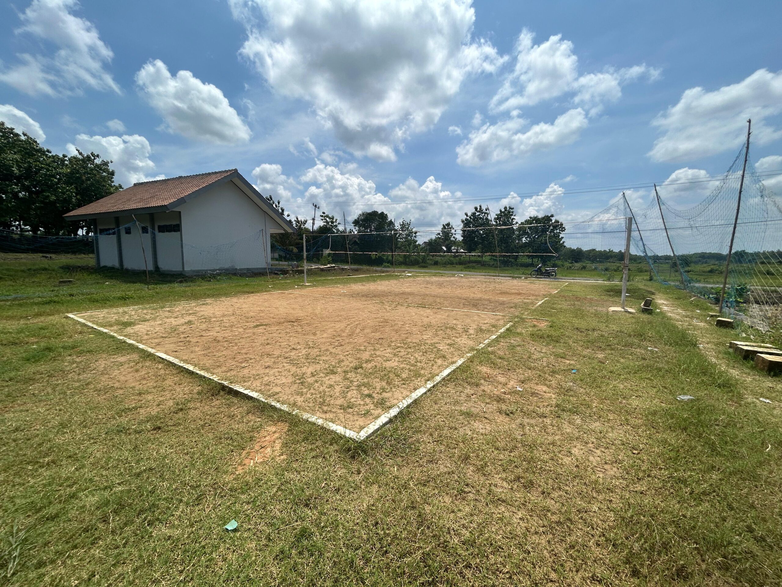 Lapangan tersebut tampak hanya berupa urukan tanah seadanya dengan pembatas area minimalis. Pemasangan net dilakukan secara sederhana, dan yang paling mencolok, jaring pembatas bola hanya menggunakan tiang bambu lapuk tanpa adanya fasilitas penerangan listrik. Warga merasakan kekecewaan mendalam, mengharapkan fasilitas lapangan voli yang layak dan optimal untuk kegiatan olahraga, bukan pekerjaan yang terkesan perfunctory (asal jadi).