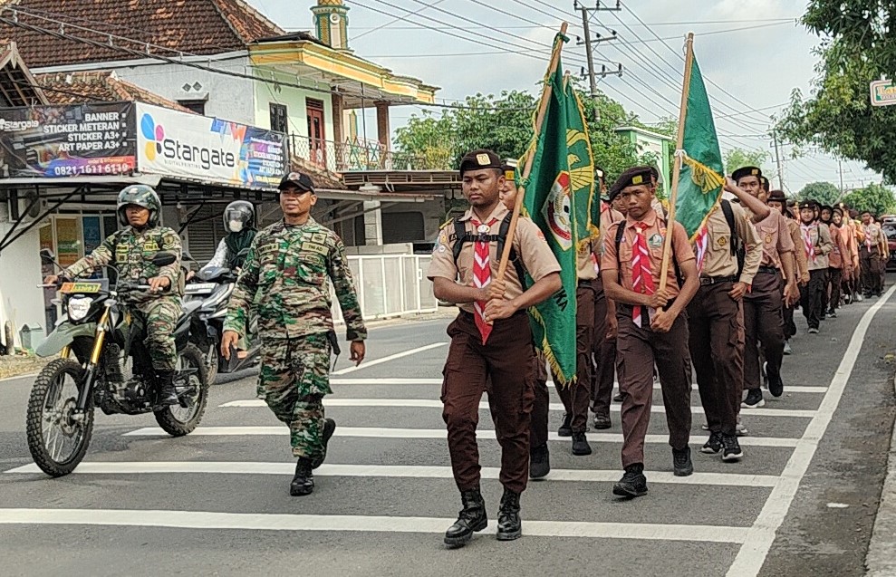 Peringati Hari Juang TNI-AD, Saka Wira Kartika Kodim Bojonegoro Jalan Kaki 20 kilometer