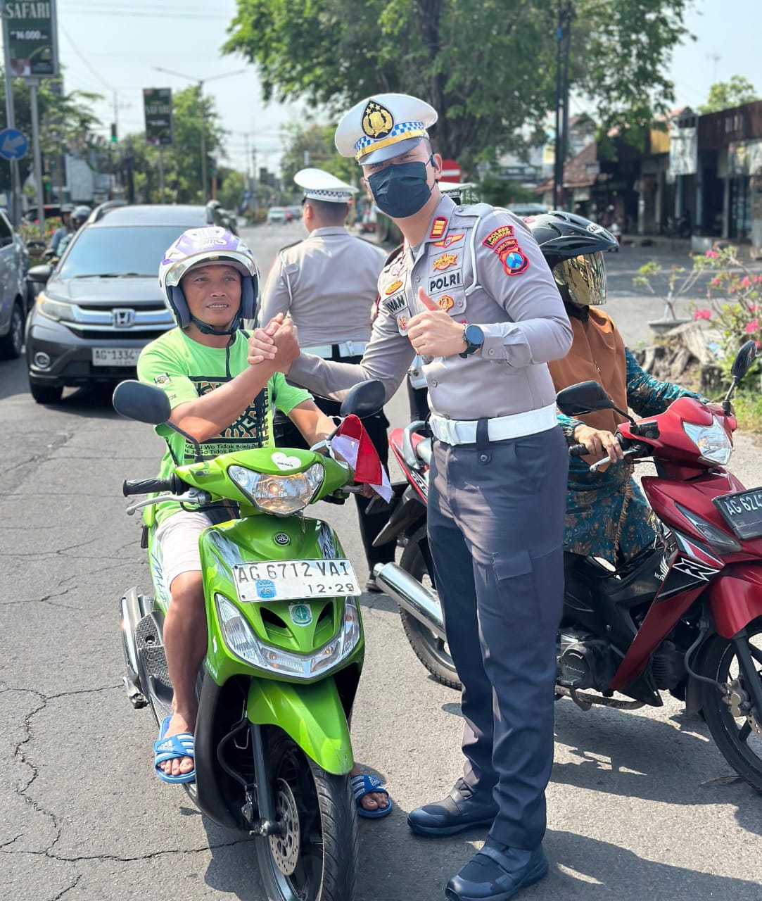 “Melalui kegiatan ini, kami ingin menyampaikan pesan bahwa kemerdekaan harus diisi dengan perilaku yang tertib dan bertanggung jawab, termasuk saat berkendara,” tutur AKP Ivan.
