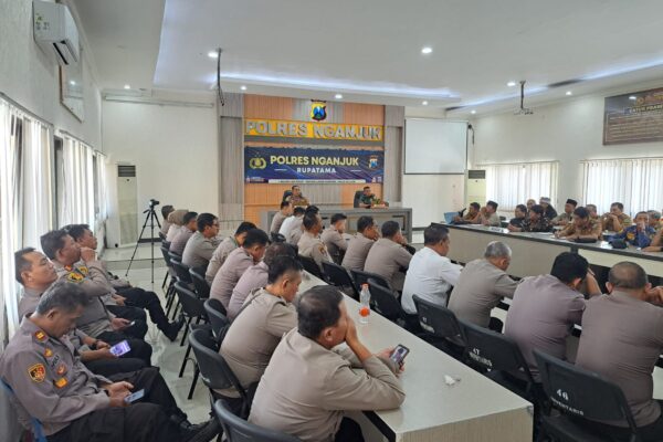 Nganjuk, Frekwensipos.com.– Kapolres Nganjuk AKBP Henri Noveri Santoso, S.H., S.I.K., M.M., memimpin Apel Jam Pimpinan yang digelar di halaman Mapolres Nganjuk pada Senin (28/7/2025). Kegiatan ini diikuti oleh Wakapolres KOMPOL Andria Diana Putra, S.E., M.H., para Pejabat Utama, personel, serta Aparatur Sipil Negara (ASN) Polres Nganjuk. Dalam arahannya, Kapolres menyampaikan apresiasi dan terima kasih kepada…