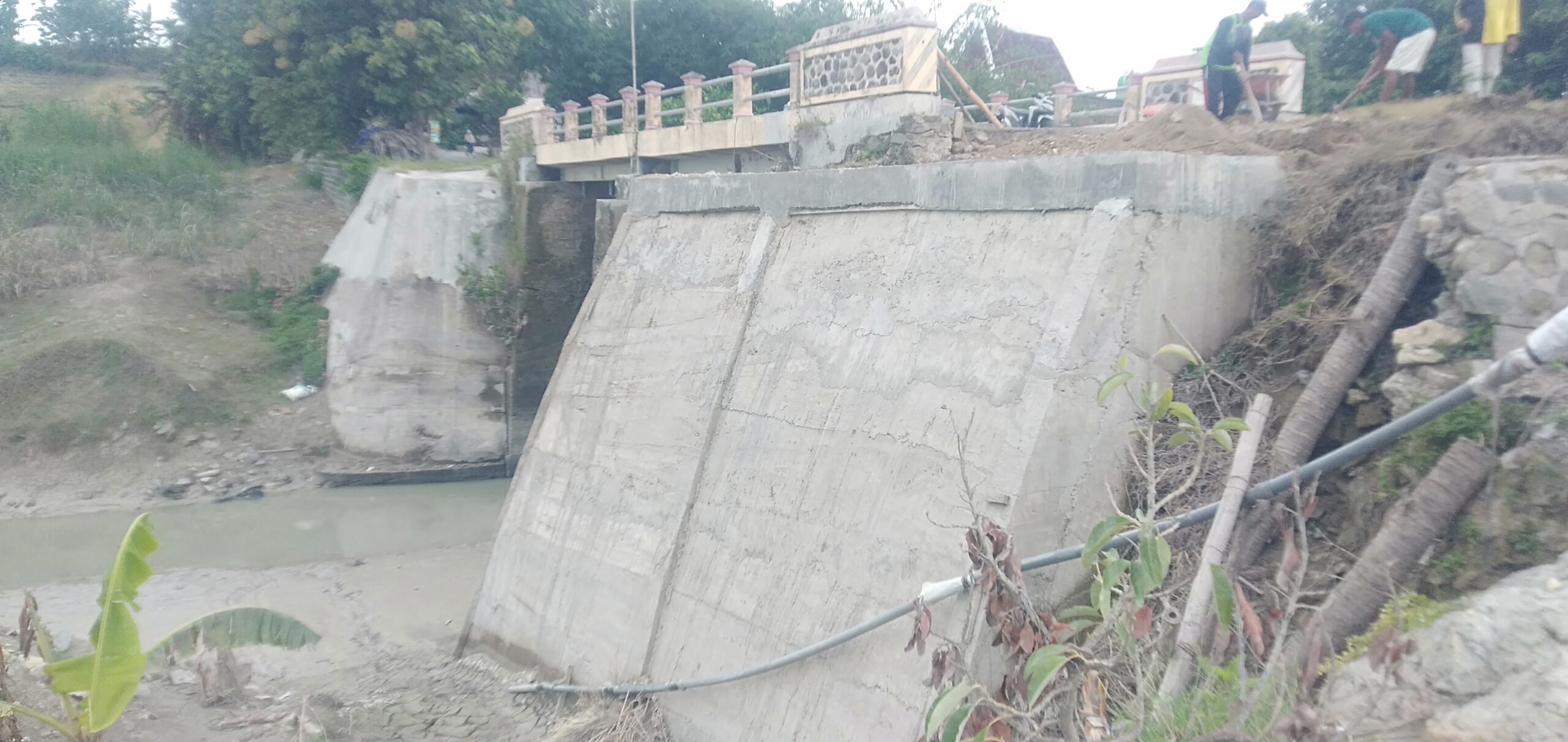 “Sebelum banjir sudah ada penurunan tanah cukup dalam di sekitar sayap jembatan,” ujar Narto, seorang petani yang setiap hari melewati jembatan tersebut. Ia juga sempat terheran perbedaan pengerjaan pada sayap jembatan, di mana sebagian menggunakan pipa resapan dan sebagian tidak. Sambil menunjuk tanggul sayap jembatan yang memiliki ketinggian hampir 5 meter dari permukaan sungai .